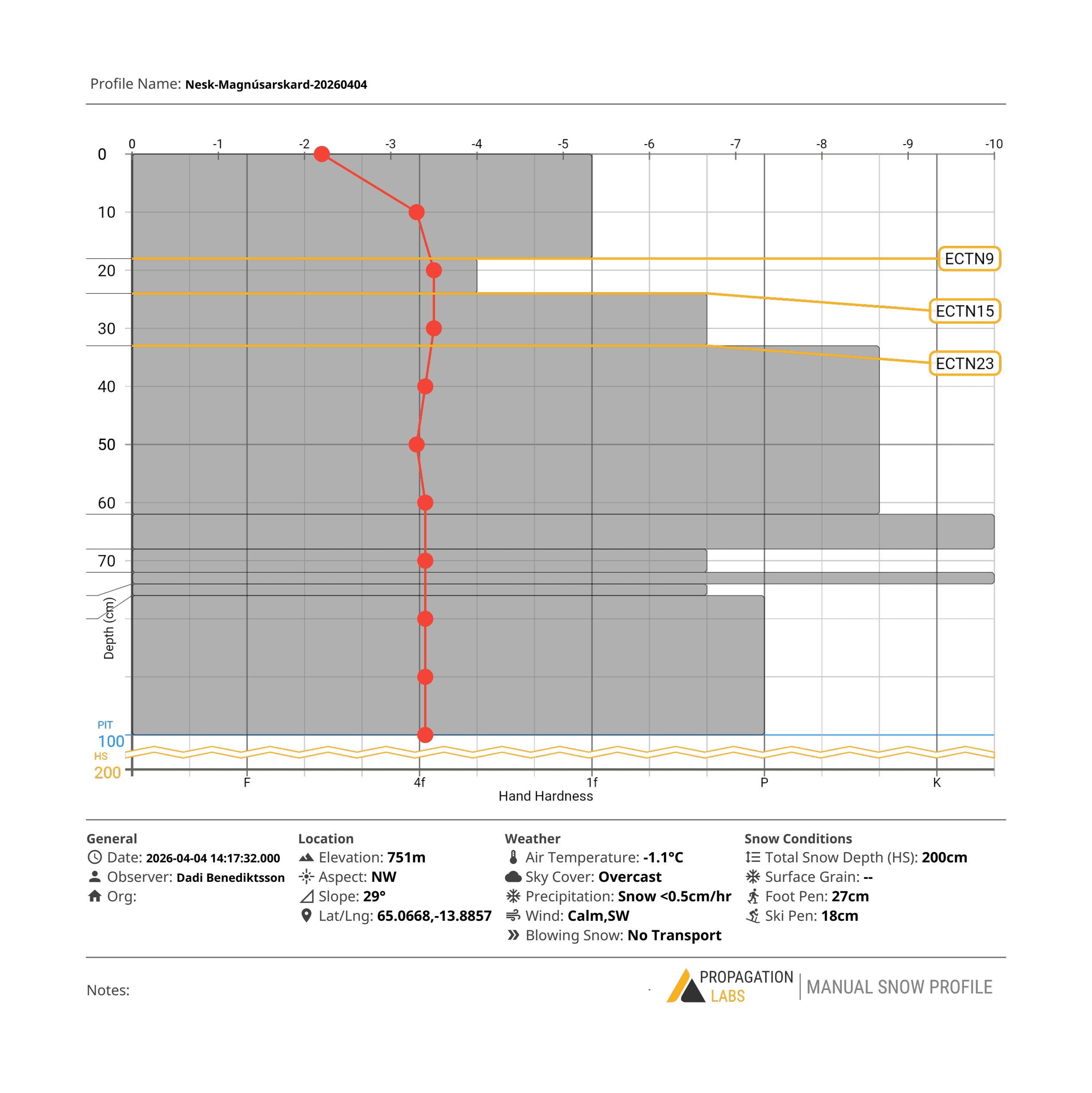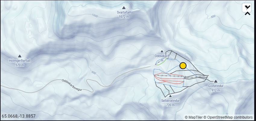 Snjógryfja var gerð í Magnúsarskarði við Oddskarð þann 4. apríl.